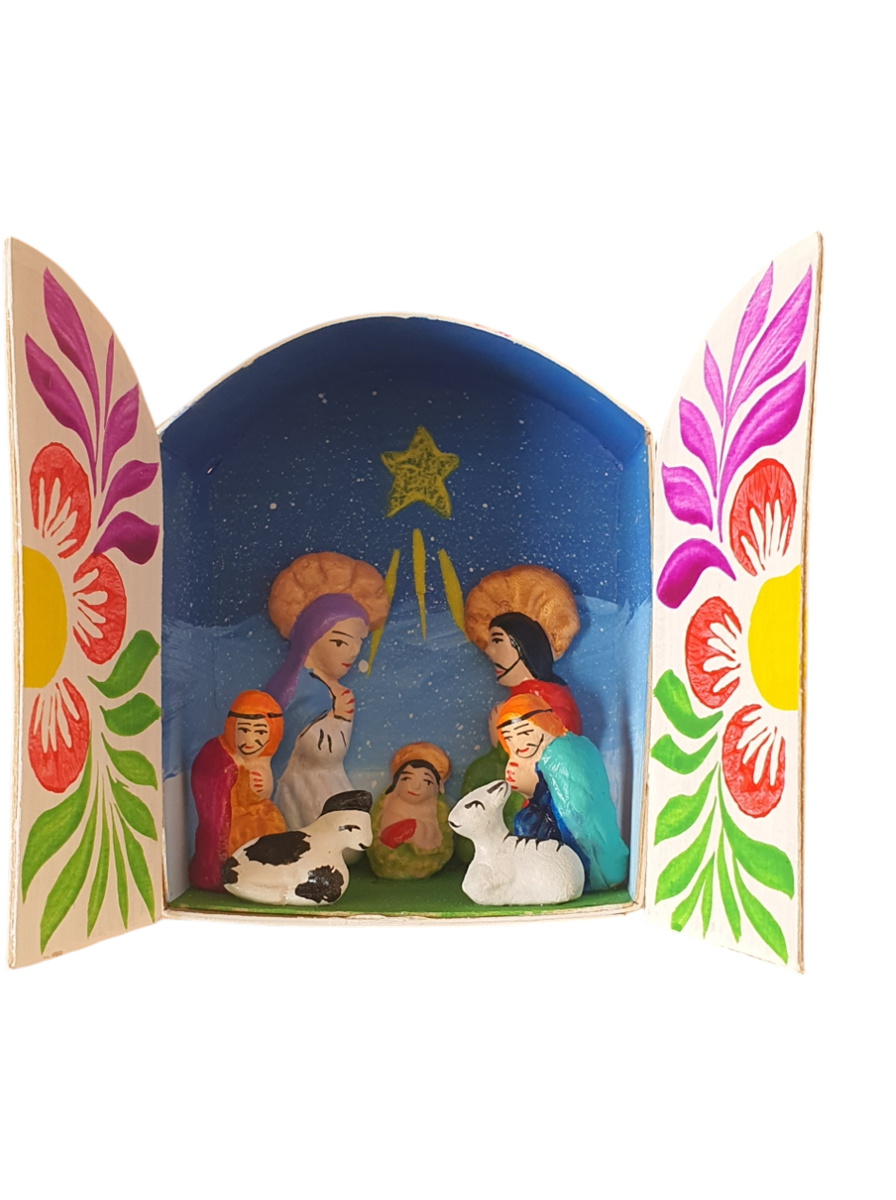 Ayacucho ligt in de hooglanden van centraal-Peru en staat bekend om zijn rijke ambachtscultuur. Missionarissen introduceerden eeuwen geleden draagbare altaren, die door lokale kunstenaars werden omgevormd tot een geheel eigen kunstvorm.
