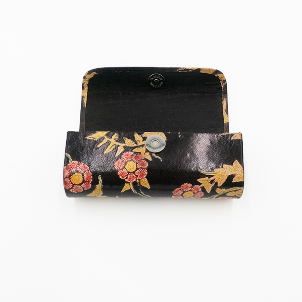 Deze zwarte leren brillenkoker heeft een ontwerp met gekleurde bloemen, wat zorgt voor een vrolijke en decoratieve uitstraling. De brillenkoker beschermt je bril tegen krassen en lichte beschadigingen en is geschikt voor verschillende soorten brillen, zoals leesbrillen of zonnebrillen. Door het compacte formaat past de brillenkoker gemakkelijk in een tas of jaszak.