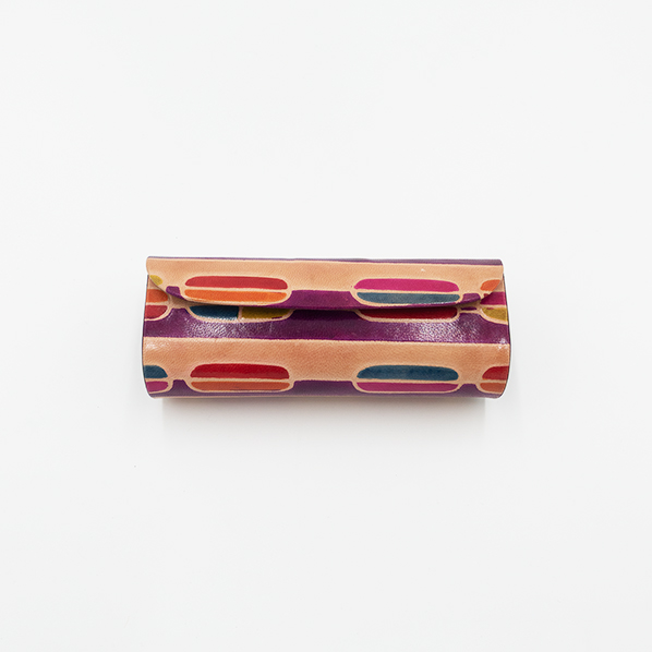 Handgemaakte leren brillenkoker uit India met gekleurde vlakken. Een stijlvolle brillenkoker van geitenleer om je bril veilig op te bergen en gemakkelijk mee te nemen.