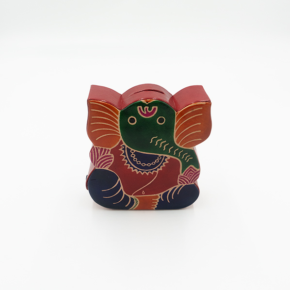 Handgemaakte leren olifant spaarpot van geitenleer uit India – een vrolijk en uniek item waarmee sparen meteen leuk wordt voor kinderen.